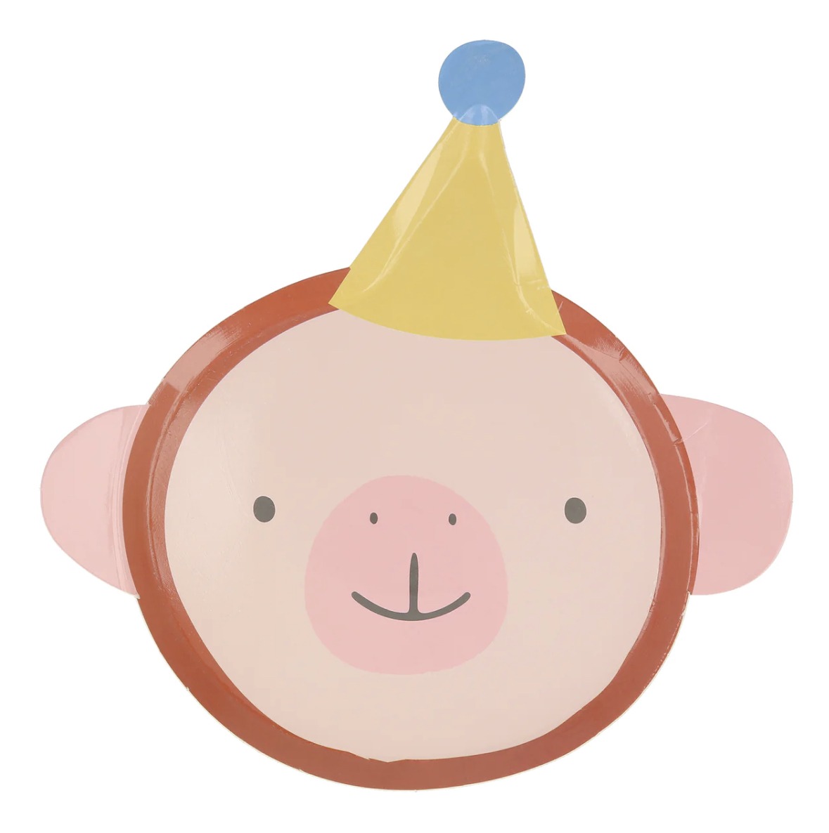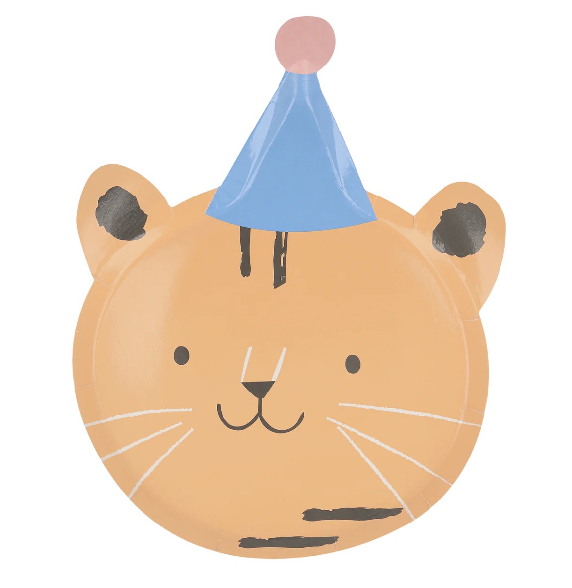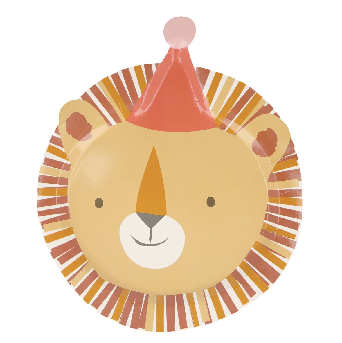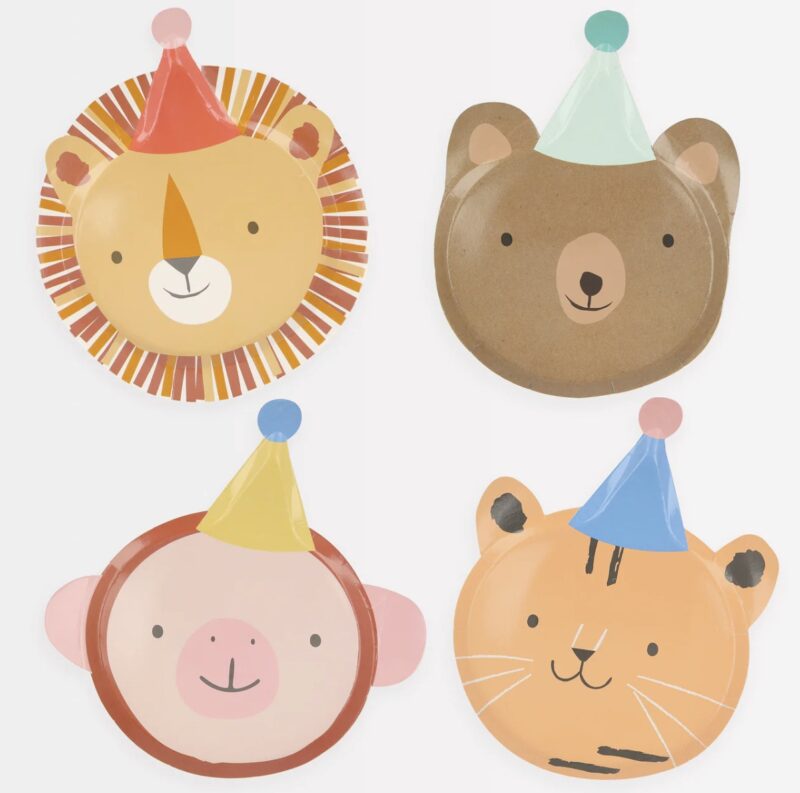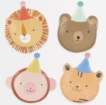 Meri Meri Pappteller in 4 verschiedenen Tier-Designs wie Löwe, Affe, Bär und Tiger