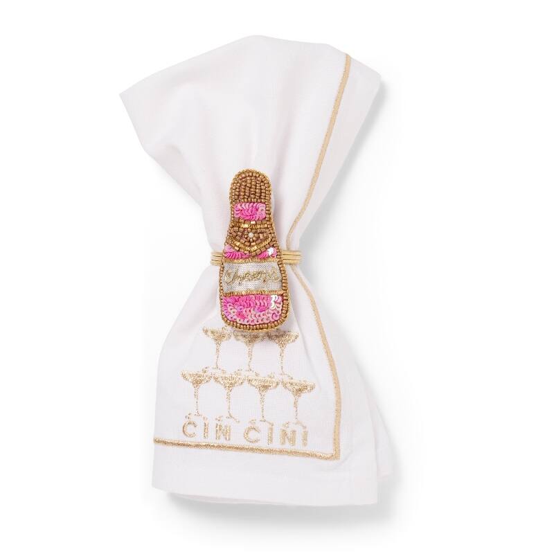 Vondels – Verspielter Serviettenring in Form einer Champagnerflasche (H 7 cm) – dein glamouröser Hingucker für die Tischdekoration.