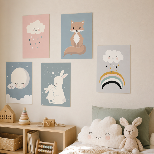 Die Poster eignen sich perfekt, um kahle Wände lebendig zu gestalten und eine warme, inspirierende Atmosphäre zu schaffen. Ob über dem Bett, beim Spielbereich oder in der Leseecke – die Motive lassen sich vielseitig kombinieren und immer wieder neu arrangieren.