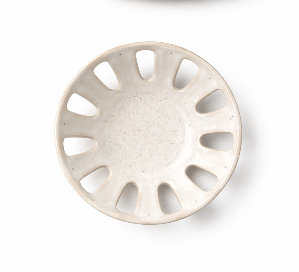 Handgefertigte Fruchtschale Weiss (D23xH5,5cm) aus Grès. Perfekt für Obst oder Dekoration.