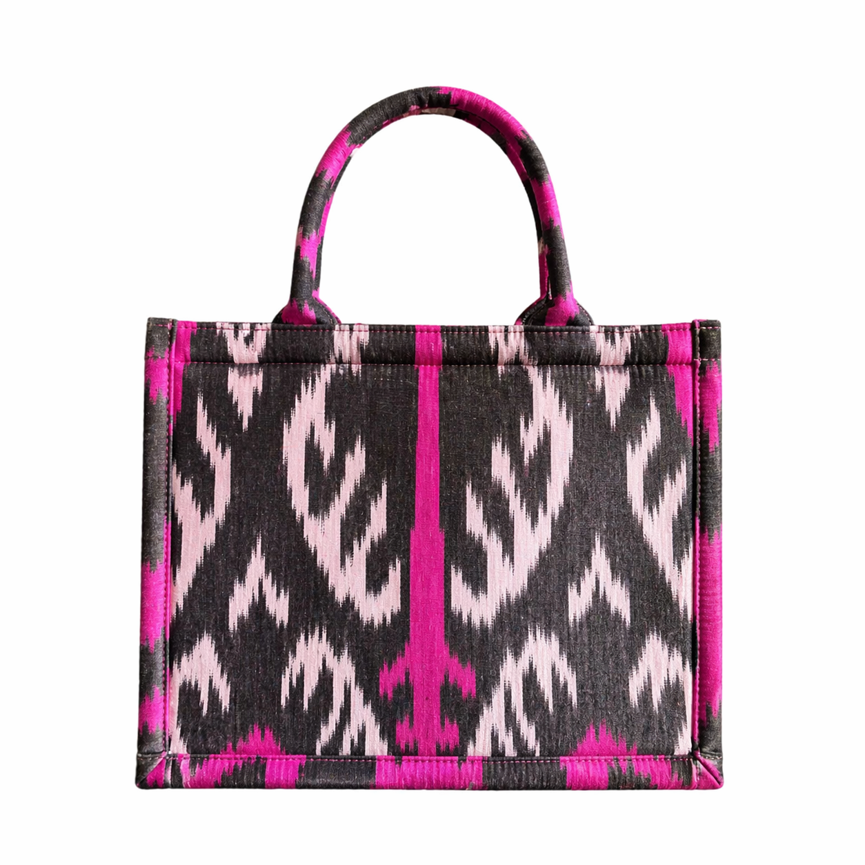 Velvetica – Handgefertigte Tote Bag aus Ikat Seide mit glatter Oberfläche. Die moderne Alternative zu den klassischen Samtmodellen – klar, elegant und vielseitig kombinierbar. Jedes Stück ist ein Unikat.