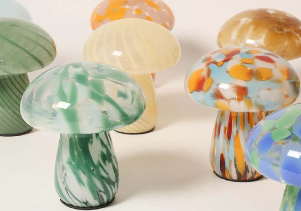 Die Lampe ist batteriebetrieben und flexibel platzierbar – ganz ohne störende Kabel. Ihr Retro-inspiriertes Design erinnert an die Murano-Pilzlampen der 1970er Jahre und macht sie zu einem einzigartigen Deko-Highlight.