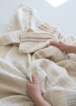 Die Nils Musselin-Decke vereint Leichtigkeit und Wohlgefühl in Ihrem Zuhause. Gefertigt aus 100 % Baumwoll-Musselin – mehrlagig, weich gedreht und aus Portugal – besticht sie durch ihr lockeres Gewebe und fliessende Struktur, die beim Waschen kaum einläuft und sogar im Tumbler sanft bleibt. Mit ca. 140 × 200 cm ist sie vielseitig: ideal als zusätzliche Wärmeschicht, leichte Decke für milde Nächte oder kuscheliger Begleiter auf dem Sofa. Elegant gestreift, weich und einladend in Beige-Auberginen-Tönen.