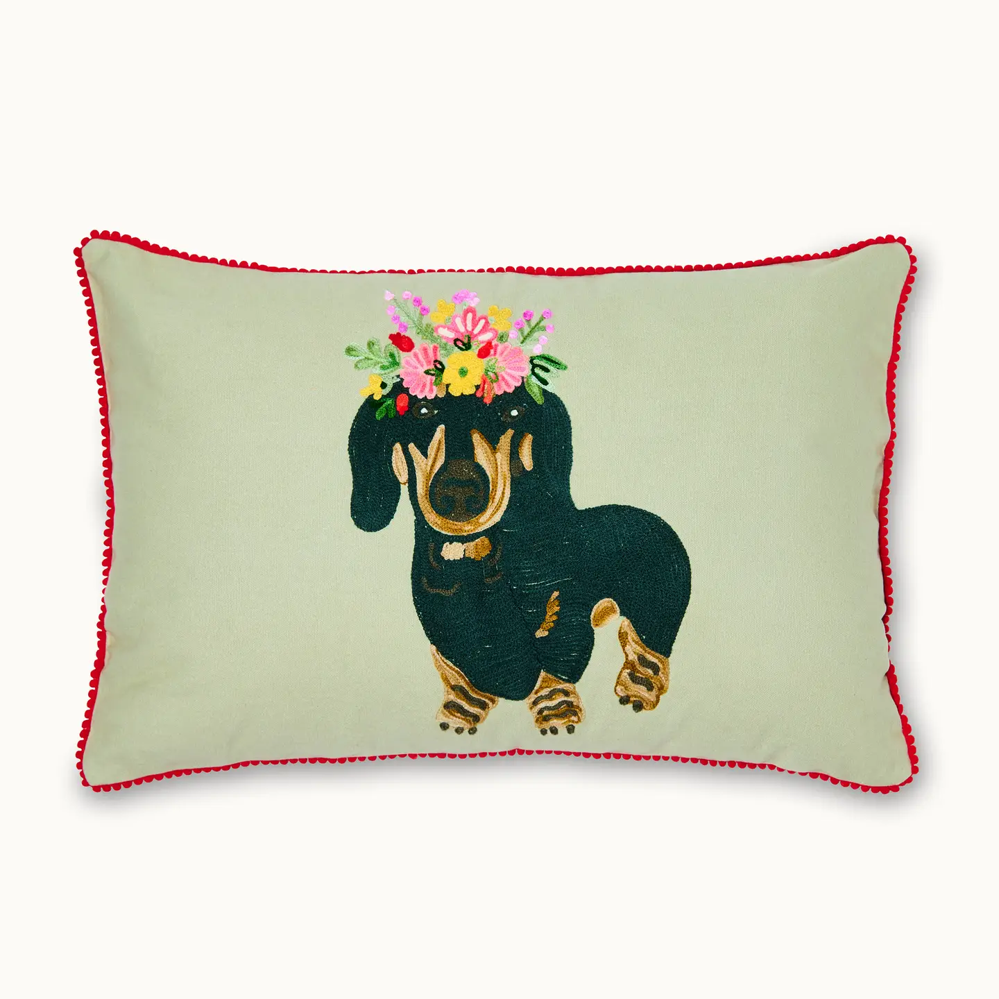 by Vivi – Verspielter Kissenbezug aus 100 % Baumwolle. Mit liebevollen Stickereien im Dackelmotiv und dekorativem Rahmen.