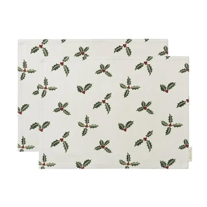 Sophie Allport – Tischset „Holly & Berry“: 2 Stück à 31 × 41 cm, 100 % Baumwolle, ideal für eine stilvolle Weihnachtsdekoration.