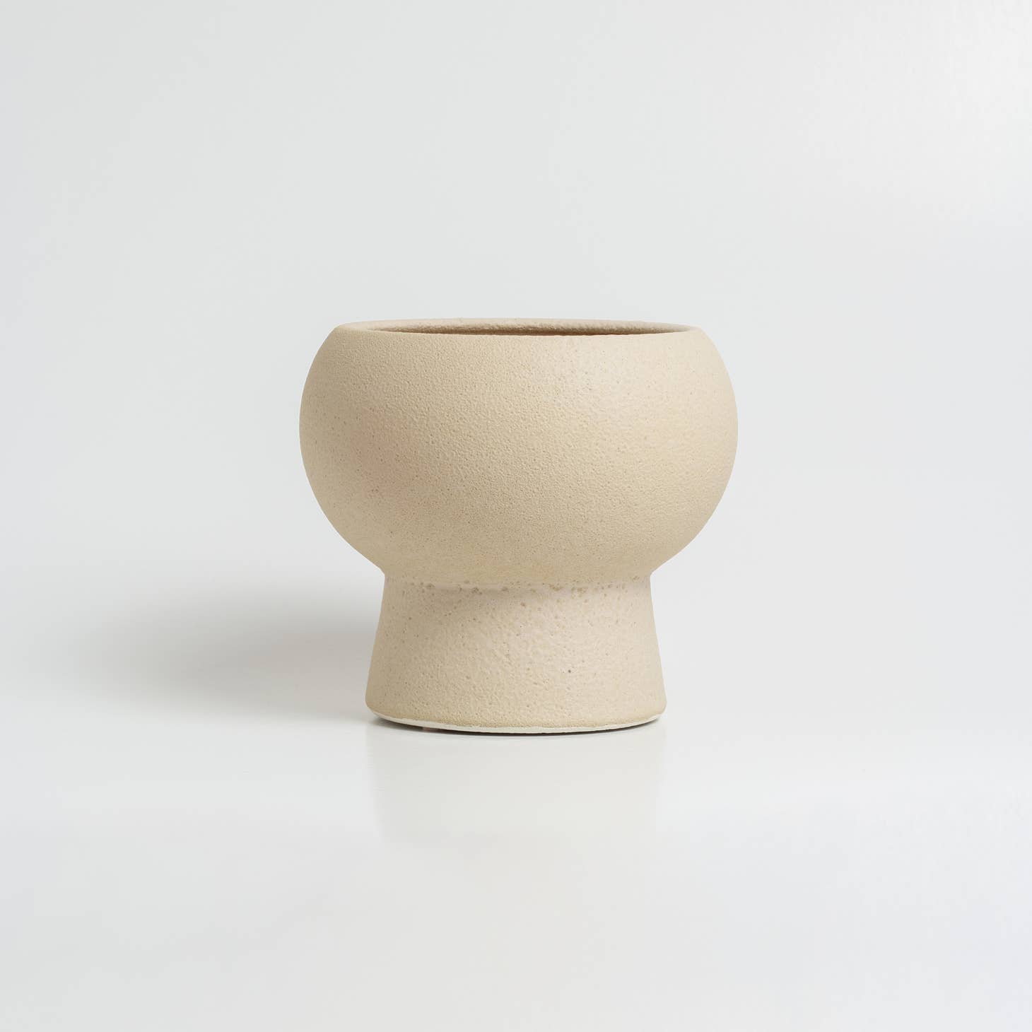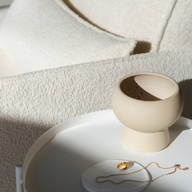 Vase aus strukturierter Sandglasur, die die faszinierende und reine Schönheit vulkanischer Texturen widerspiegelt. Grösse: 14 x 14cm