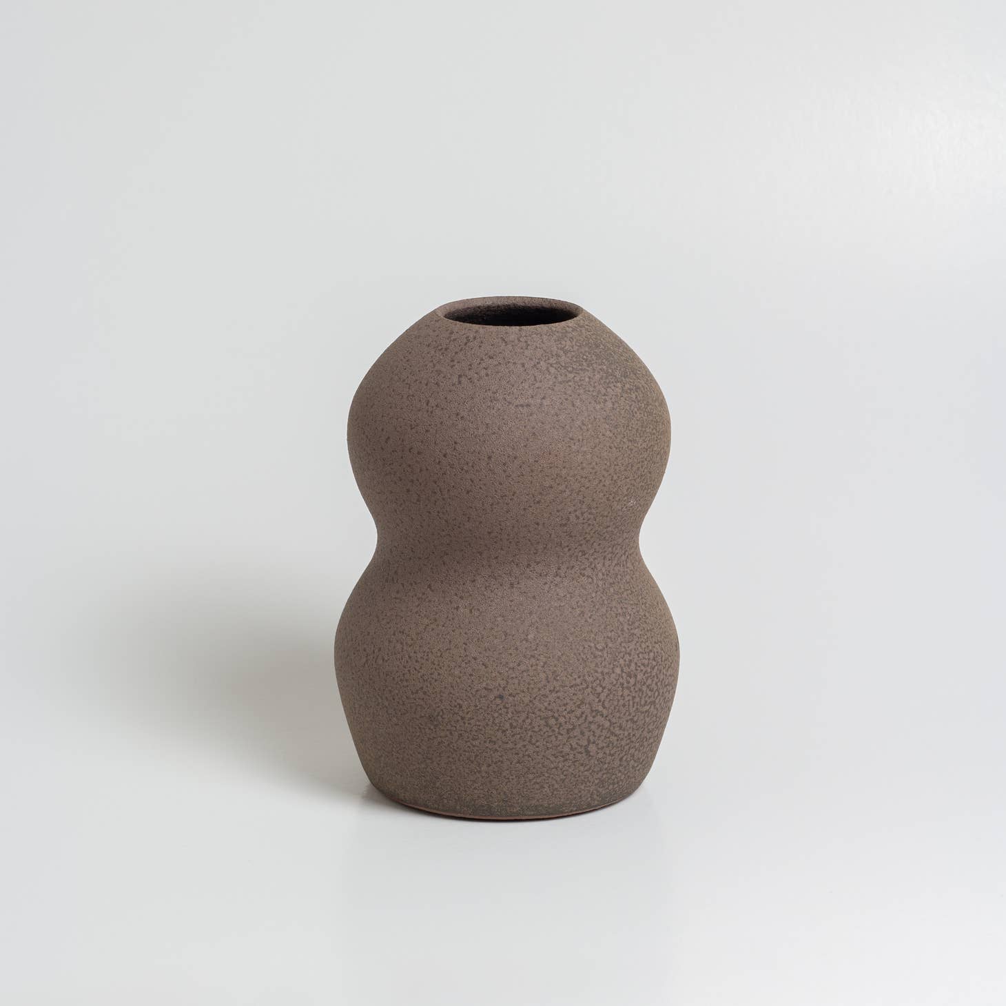 Vase aus strukturierter brauner Glasur, die die faszinierende und reine Schönheit vulkanischer Texturen widerspiegelt. Diese moderne und minimalistische Vase ist wasserdicht und ermöglicht es Ihnen, frisch geschnittene Blumen oder trockene Blumen hineinzustellen, oder Sie können sie als reine Dekoration verwenden, ohne etwas hinzuzufügen