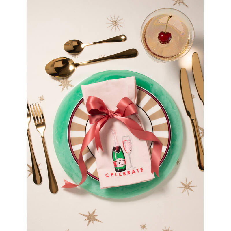 Mach deinen Tisch zum Hingucker! Diese zarten Servietten in softem Rosaton von Vondels bringen sofort eine festliche Stimmung in dein Zuhause. Die liebevoll gestickte Botschaft „CELEBRATE“ mit dem kleinen Champagnerglas erinnert dich daran, die schönen Momente zu geniessen – egal, ob bei Geburtstagsfeiern, romantischen Dinnern oder einem gemütlichen Brunch.